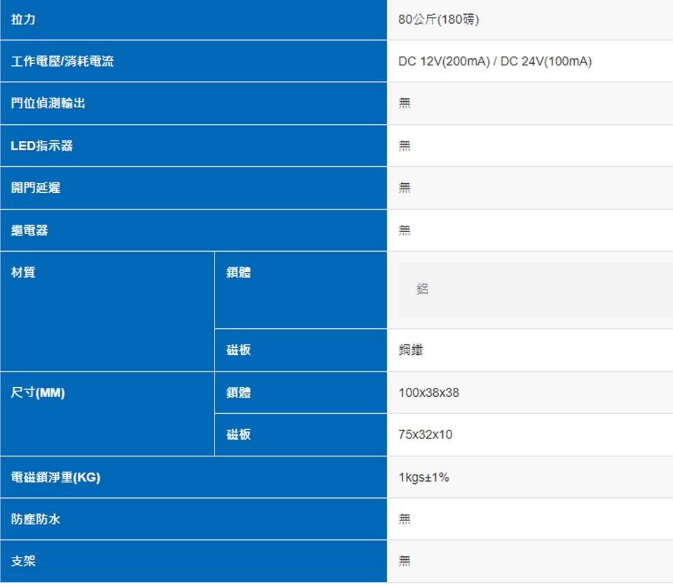 磁鎖尺寸 (mm) : 100x38x38