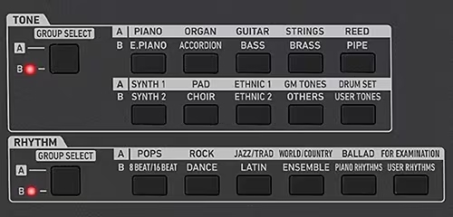 直選按鈕讓您挑選最合適的音色和節奏,現場演出中尤其實用。