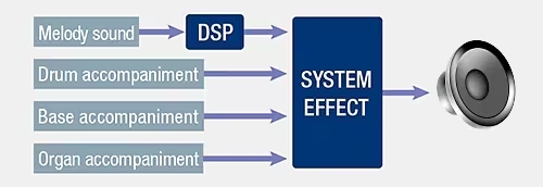 高速電子訊號處理器亦應用至每種音效類型,例如主音、基調鼓聲與低音樂部,或是管風琴。即使是基本的鍵盤配置,亦能為每種樂器帶來分明的聲音,展現表現力豐富的演出。