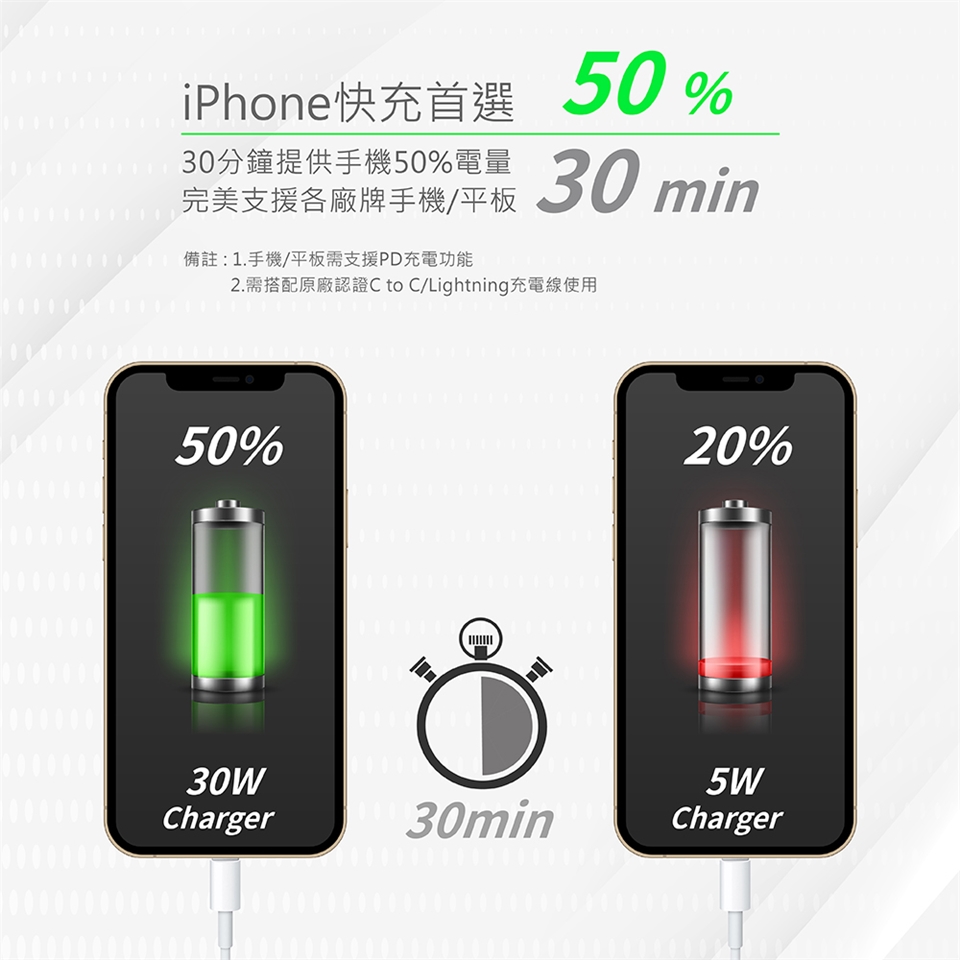 30分鐘提供50%電量、iPhone/安著手機最佳快充首選