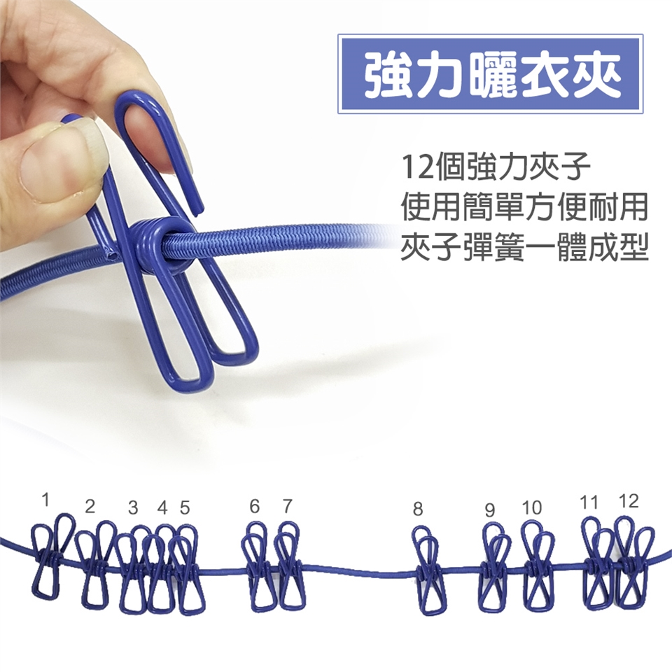 ◆ 12個強力曬衣夾 ◆ 兩端附問號鉤 方便使用