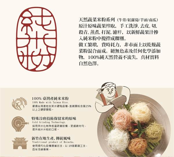 100%純米製作,下鍋前冷水沖數秒,勿過度烹煮,柔軟即可