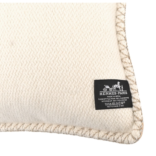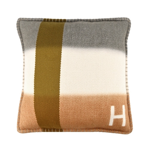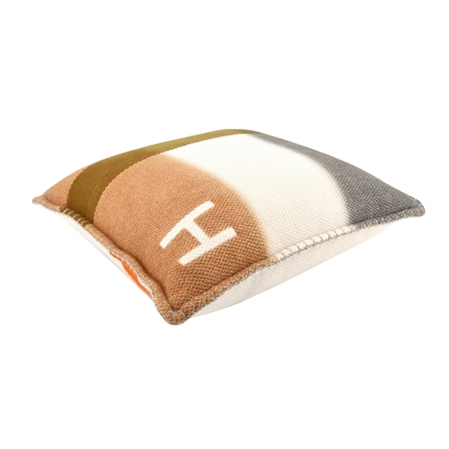Hermes 愛馬仕 H Dye 手工編織羊絨枕頭(42cm/灰/棕)