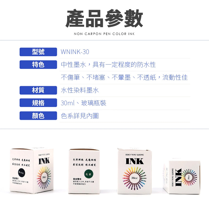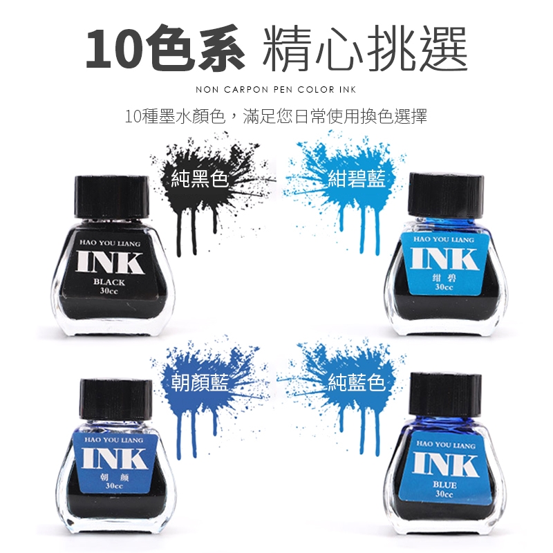 INK鋼筆墨水,不堵塞的墨水,非碳素,顏色鮮明,滑順流暢,