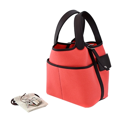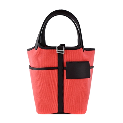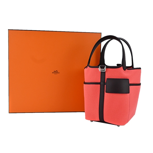 Hermes 愛馬仕 Picotin Lock 18CM帆布牛皮桶包(AM德克薩斯粉/U刻/銀釦)