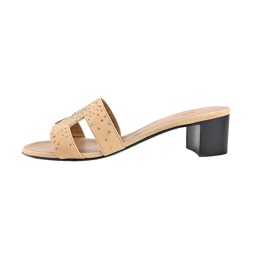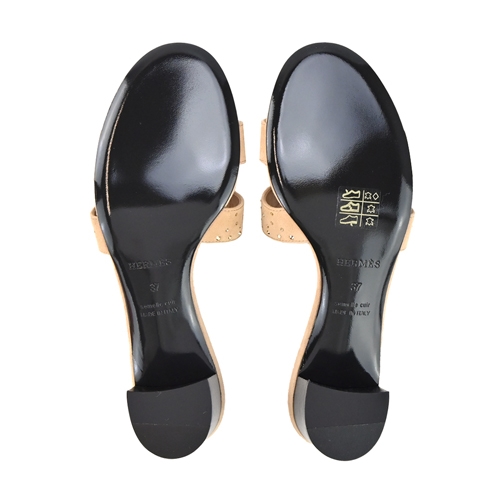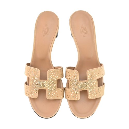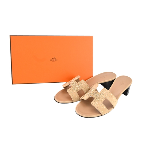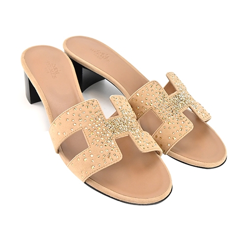 Hermes 愛馬仕 Oasis H鏤空水鑽麂皮拼接山羊皮高跟涼鞋(37碼/玫瑰/檀香木)