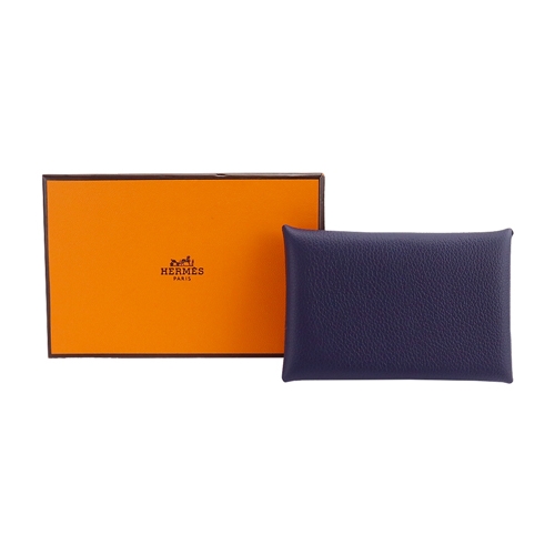 Hermes 愛馬仕經典Calvi系列釦式名片/卡夾(2Z午夜藍)
