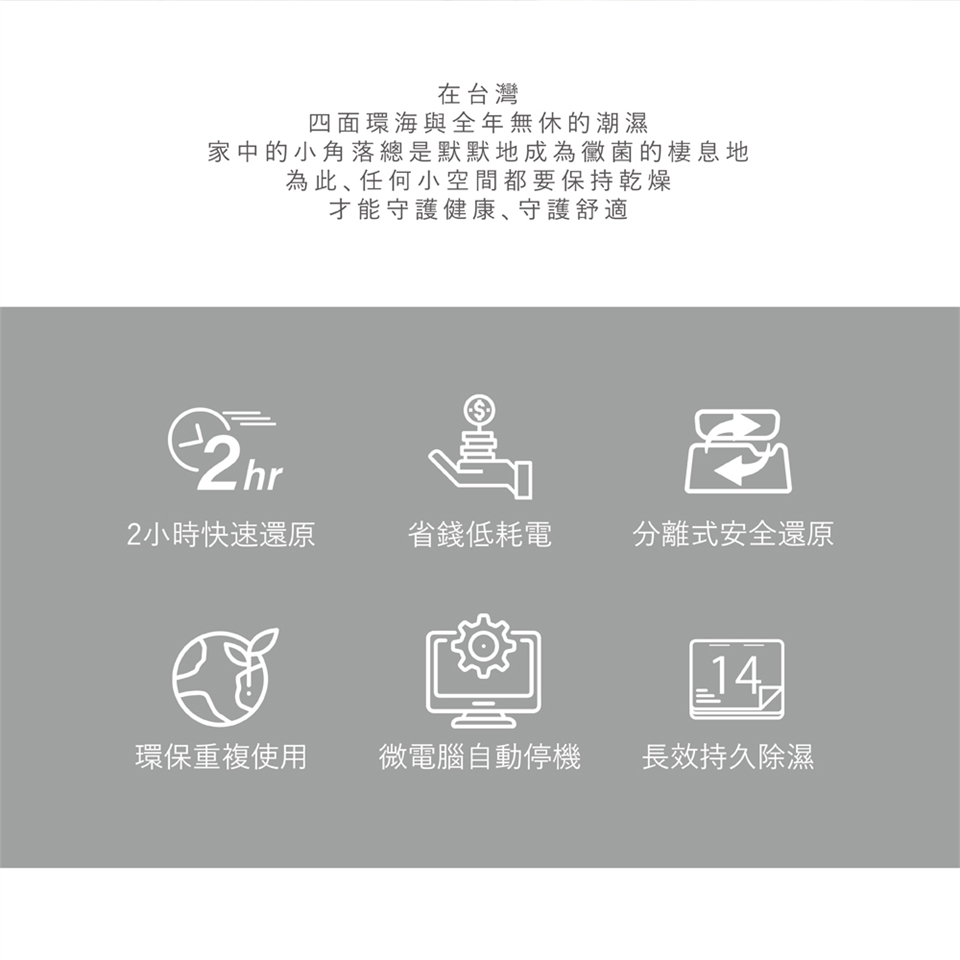 ●電費僅需0.3元/次,還原後吸濕時間長達2-3周