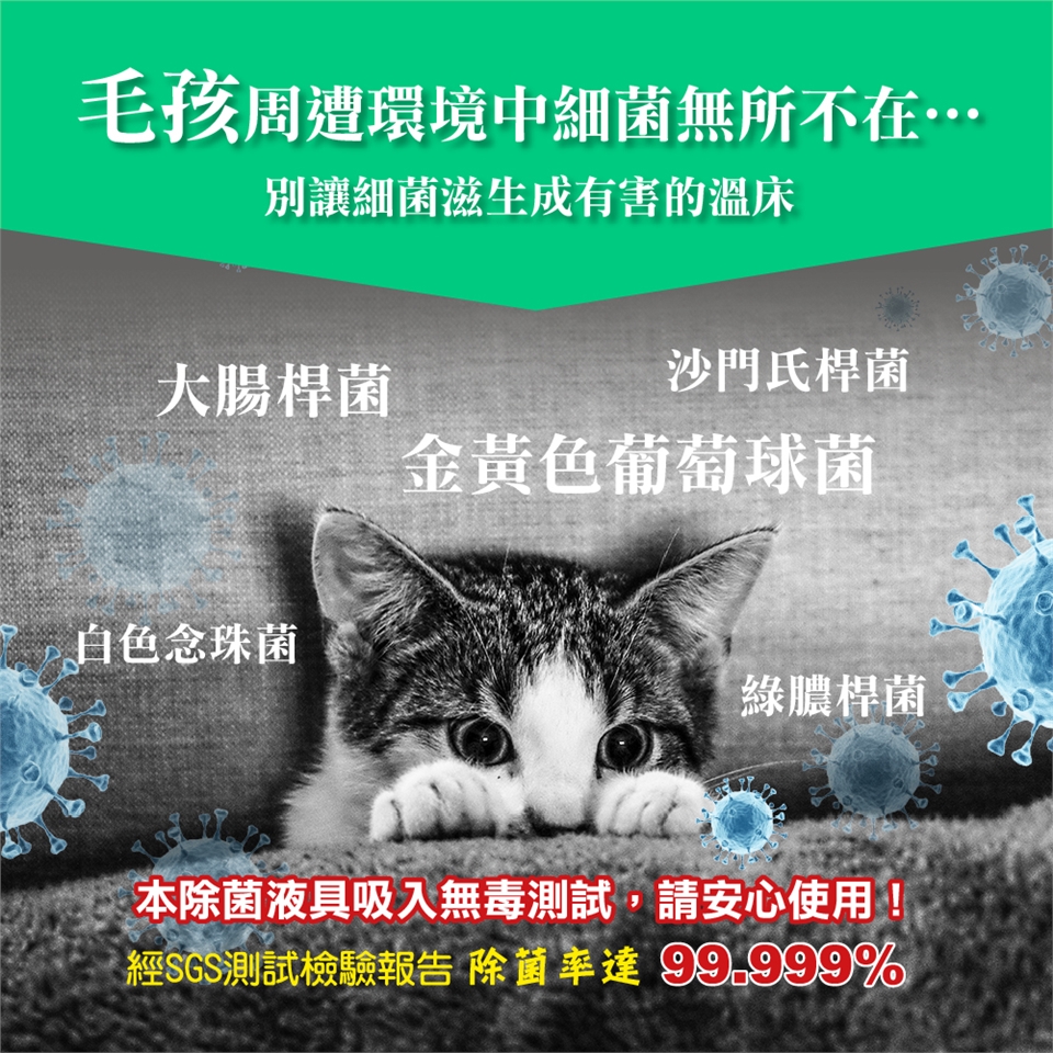 搭配次綠康除菌液天天使用,清潔又防護,尿騷 惡臭 細菌 瞬間秒散,毛孩用品必備清單!