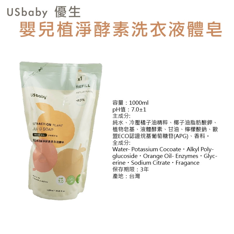 植淨液體皂 植淨橘子油液體皂配方,搭配歐盟ECO認證烷基葡糖苷(APG)以植萃液體酵素,徹底去除頑固污漬、奶垢及汗味,環保低泡,提升衣物亮白潔力。