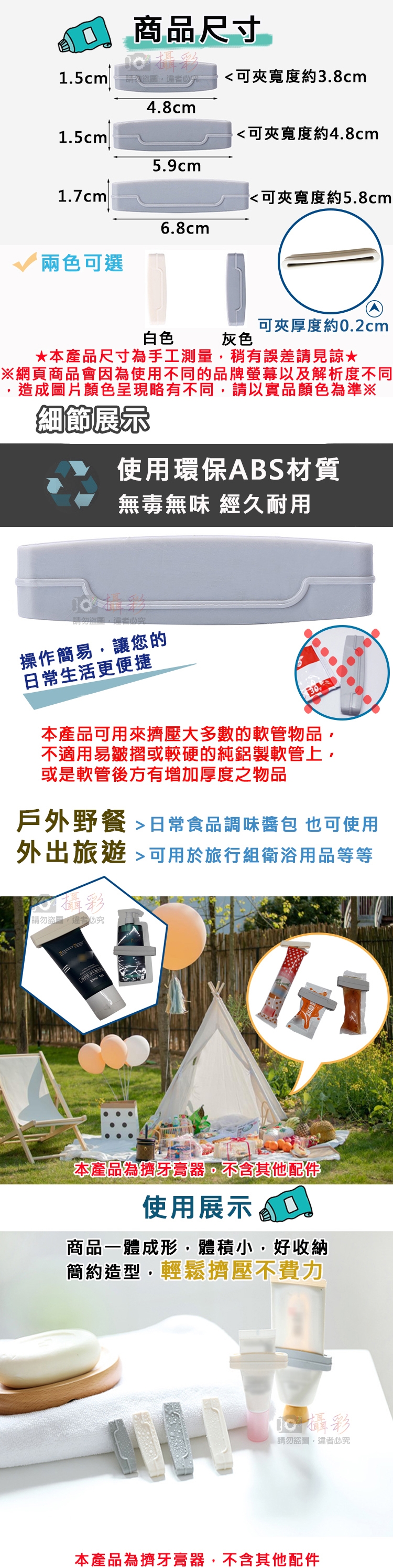 ※本產品可用來擠壓大多數的軟管物品,不適用易皺摺或較硬的純鋁製軟管上,或是軟管後方有增加厚度之物品※