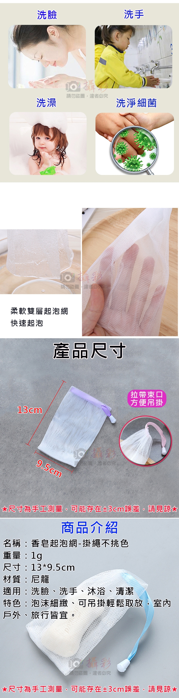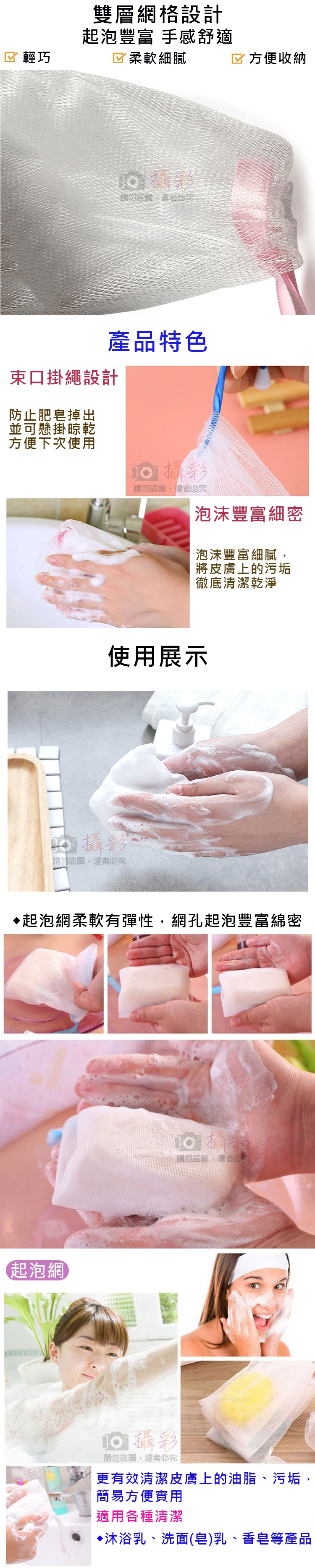 5.使用時請勿用力拉扯,以免造成起泡網損壞