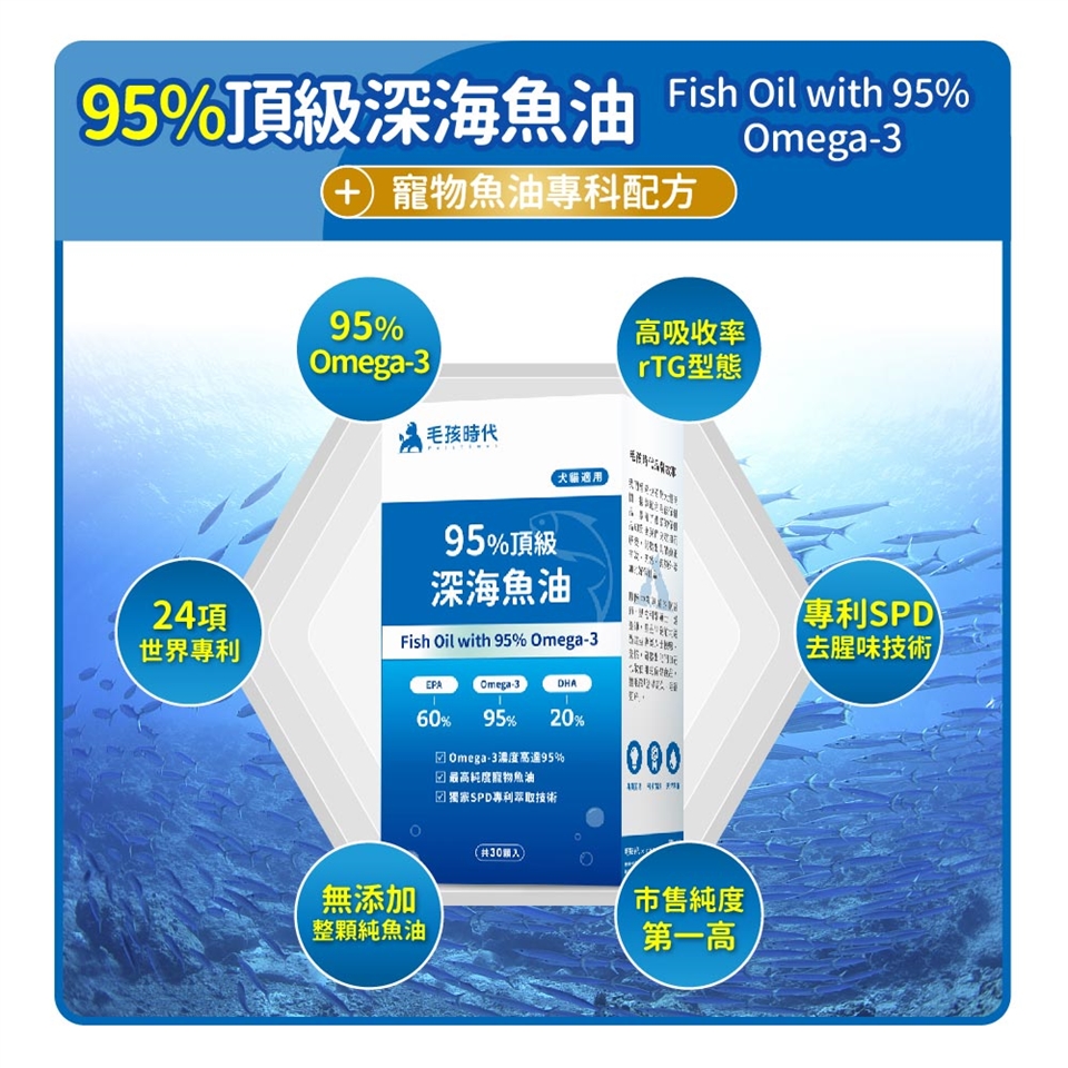 2、毛孩時代的「95%頂級深海魚油」有哪些成分特色呢?