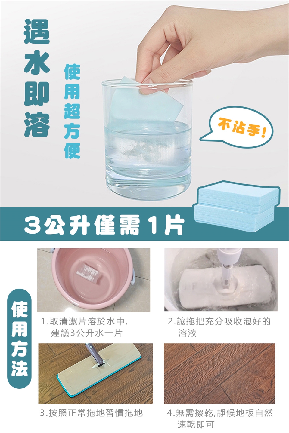 ➤一次一片遇水即溶,不沾手使用方便