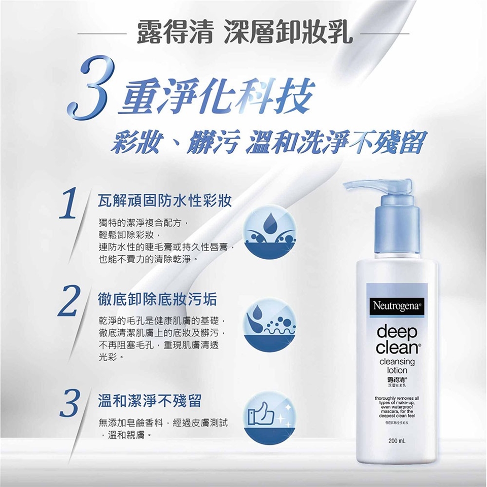 取適量卸妝乳,輕輕按摩全臉,可用化妝棉或面紙拭去,或直接用清水沖淨即可。