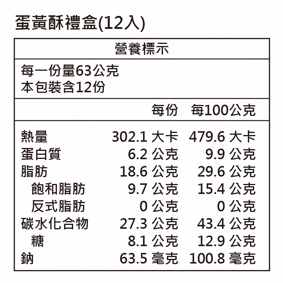 成份:麵粉、奶油、烏豆沙(紅豆、黑豆、麥芽、糖、奶油)、鹹蛋黃、糖、芝麻