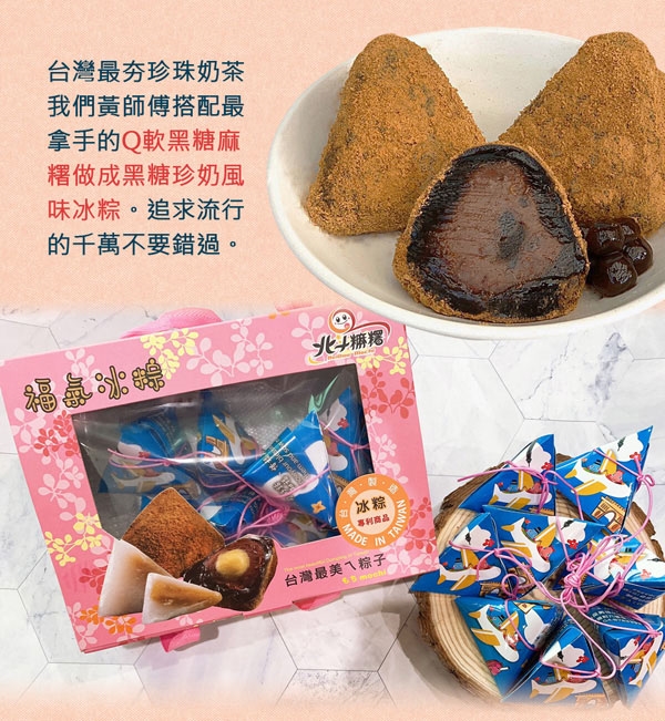 商品名稱:《北斗麻糬》黑糖珍珠奶茶風味冰粽禮盒(奶素)