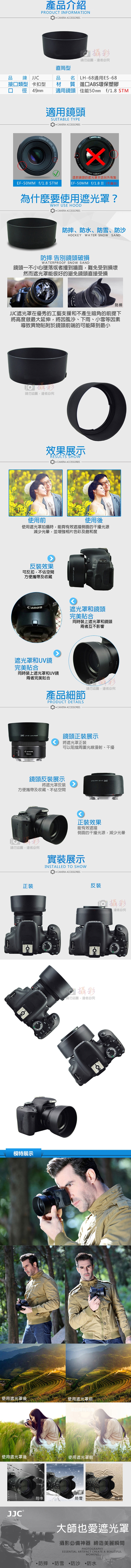 ★每個鏡頭的遮光罩都不同,同焦段不同型號的鏡頭,遮光罩也不同,例如18-135stm和18-135usm遮光罩不一樣,所以請務必確認遮光罩適用型號和您的鏡頭型號需完全相符,若不確定是否適用,可洽詢客服。★