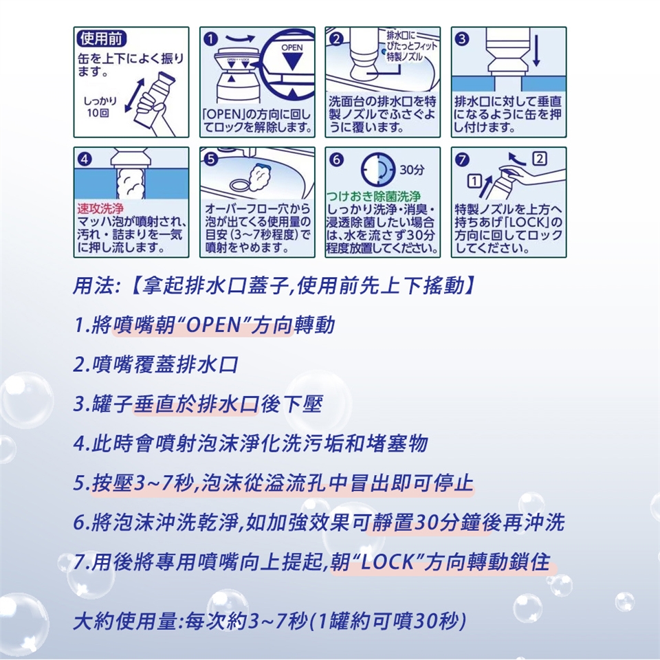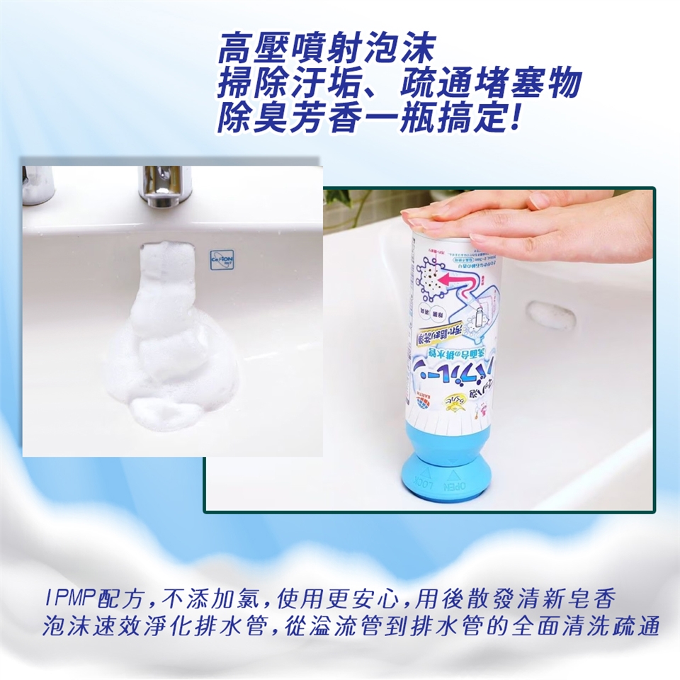 ●高壓噴射泡沫,掃除汙垢、疏通堵塞物、除臭芳香一瓶搞定!