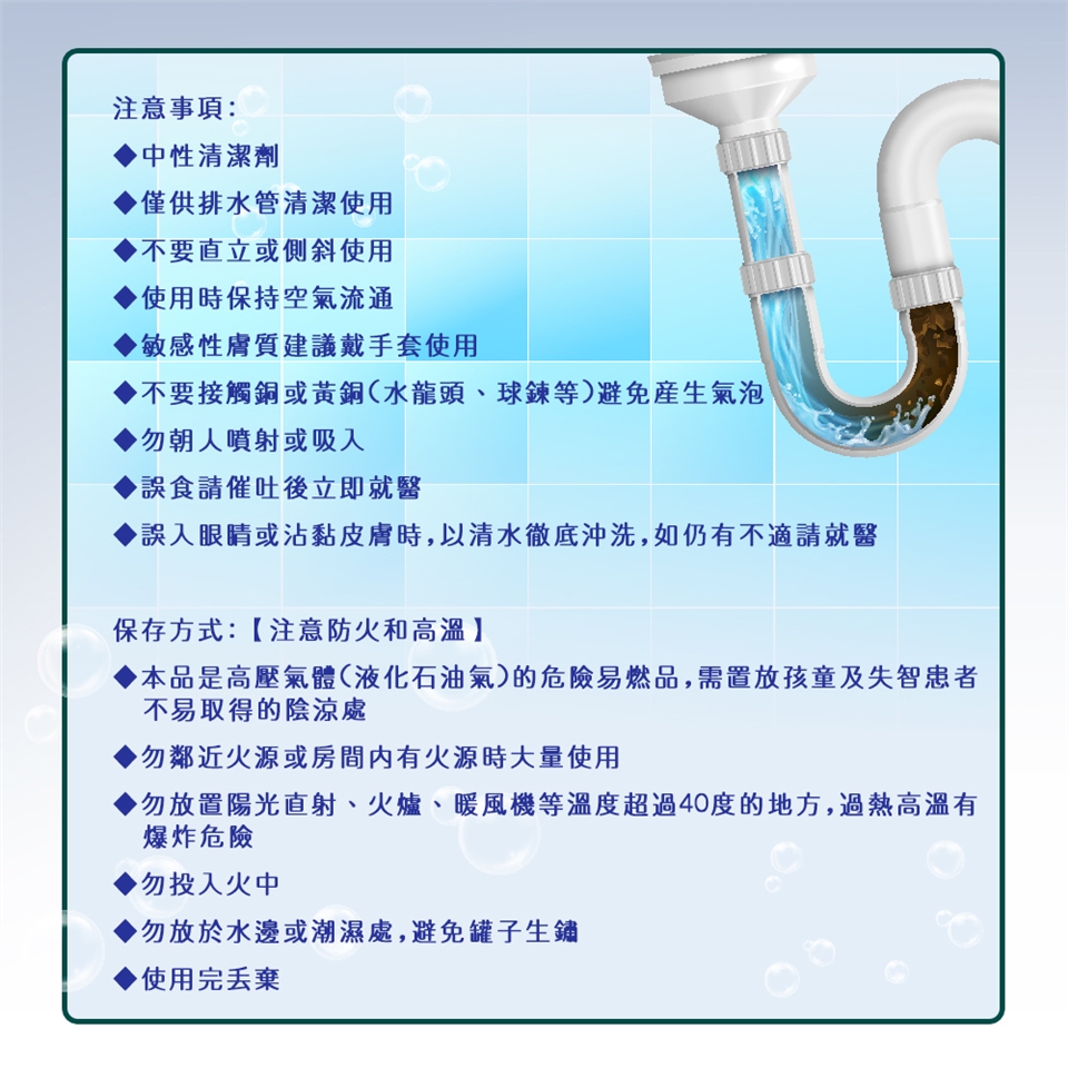 ●泡沫速效淨化排水管,從溢流管到排水管的全面清洗疏通