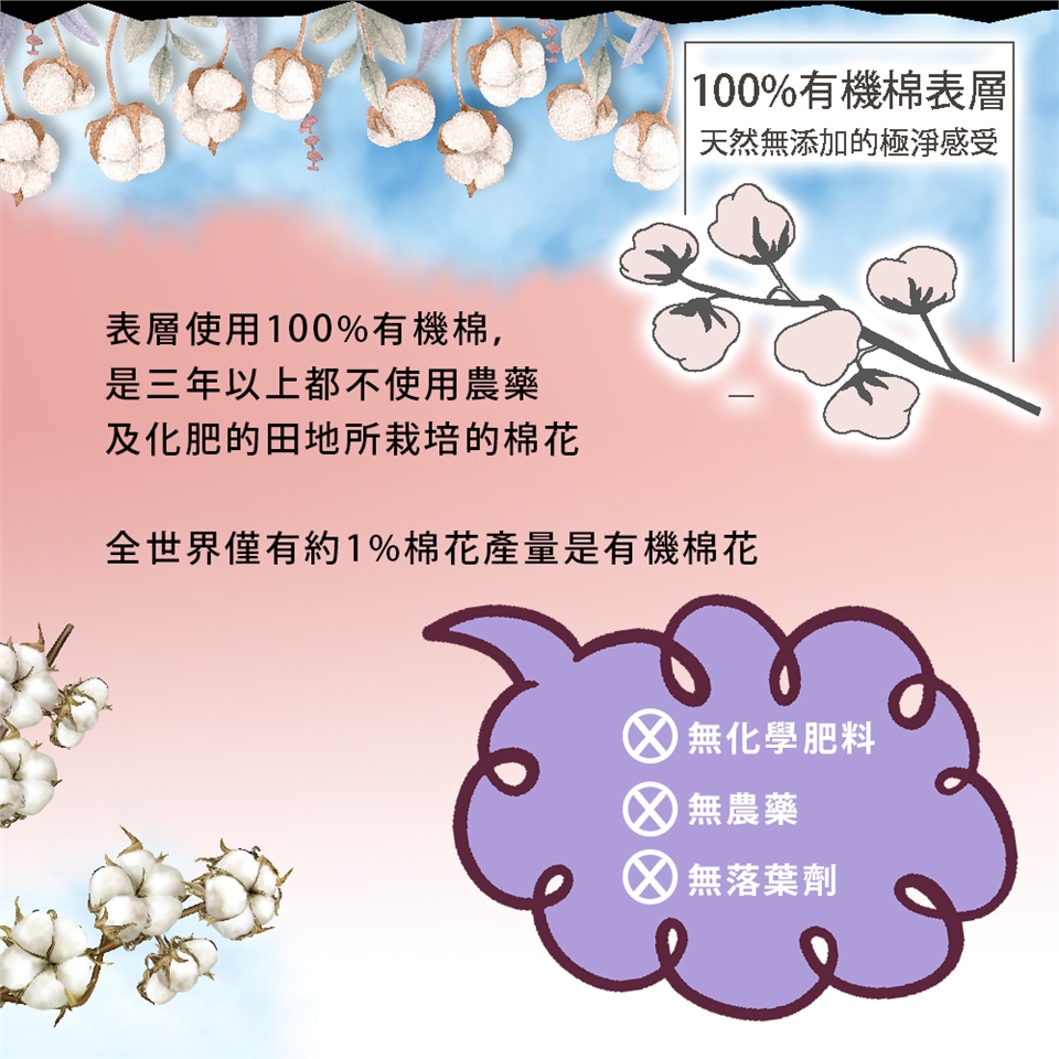 ■100%有機棉表層,無添加的極淨感受