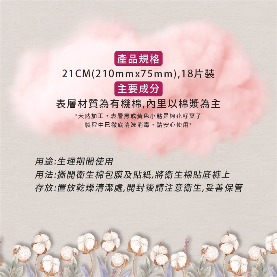 日本Cotton Labo極淨舒柔有機衛生棉(18片/21CM)