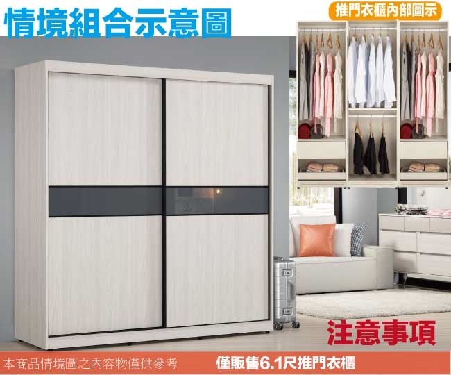【文創集】摩克6.1尺拉盤四吊衣桿二抽推門衣櫃/收納櫃 淺橡木紋色系+現代簡約風格+安心材質製造,整體採用防蛀木心板+防潮耐磨腳座+五金滑軌結構+5mm強化灰漆強化灰漆玻璃門片飾板等安心材質製造,產品外層採用防潮耐磨噴漆處理搭配採用推門櫃+吊衣桿+二抽屜+拉盤層架+內開放層格等收納空間設計,全由專人配送到家,專業安心服務,替你省下更多時間!