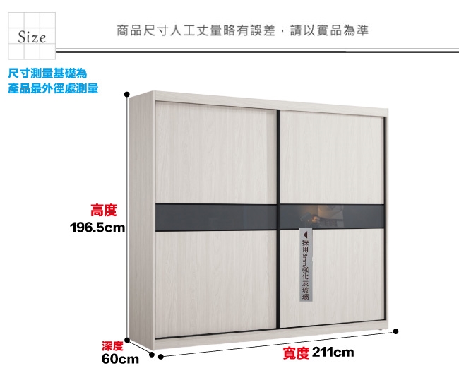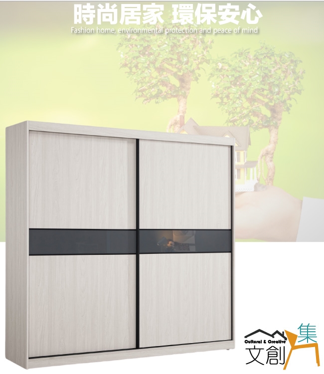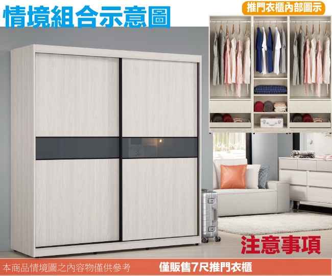 【文創集】摩克7尺二抽拉盤三吊衣桿推門衣櫃/收納櫃 淺橡木紋色系+現代簡約風格+安心材質製造,整體採用防蛀木心板+防潮耐磨腳座+五金滑軌結構+5mm強化灰漆強化灰漆玻璃門片飾板等安心材質製造,產品外層採用防潮耐磨噴漆處理搭配採用推門櫃+吊衣桿+二抽屜+拉盤層架+內開放層格等收納空間設計,全由專人配送到家,專業安心服務,替你省下更多時間!