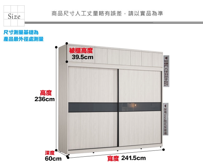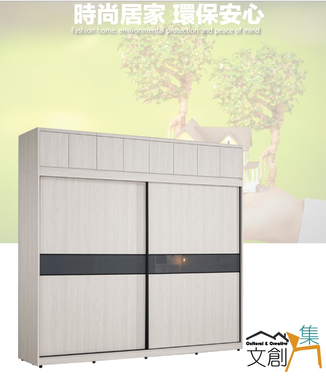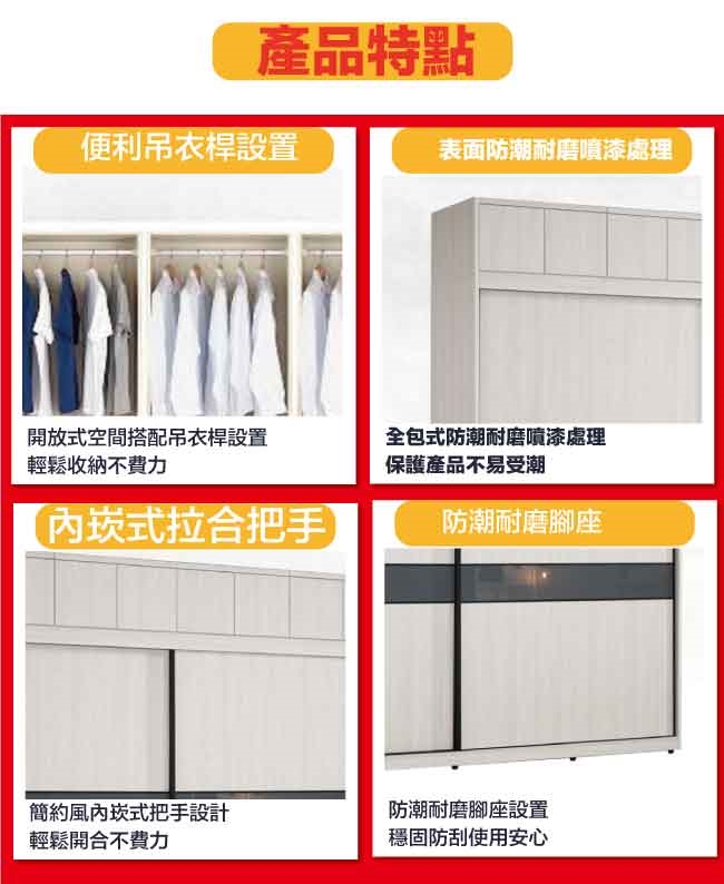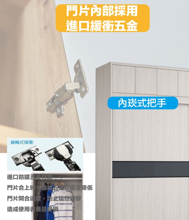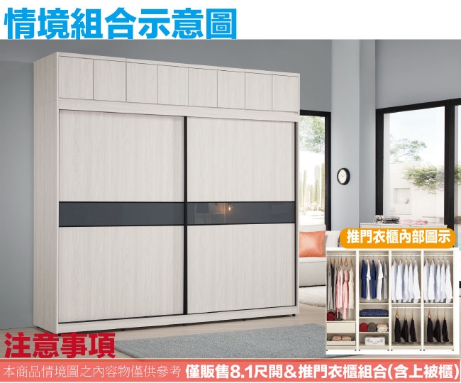 【文創集】摩克8.1尺單抽拉盤六吊桿推&開門加高衣櫃/收納櫃組合 淺橡木紋色系+現代簡約風格+安心材質製造,整體採用防蛀木心板+防潮耐磨腳座+五金滑軌結構+5mm強化灰漆強化灰漆玻璃門片飾板+防夾手緩衝門片五金等安心材質製造,產品外層採用防潮耐磨噴漆處理搭配採用下層推門衣櫃+上層開門被櫥櫃+吊衣桿+單抽屜+拉盤層架+內開放層格等收納空間設計,全由專人配送到家,專業安心服務,替你省下更多時間!