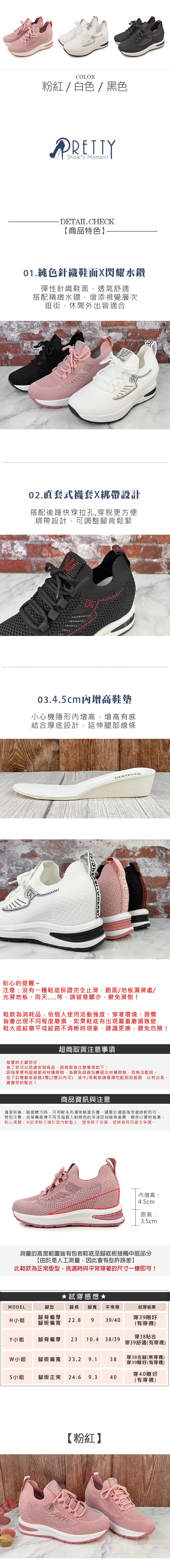 鞋款材質:鞋面-針織布+壓克力水鑽、中底-人造皮革、大底-橡塑大底