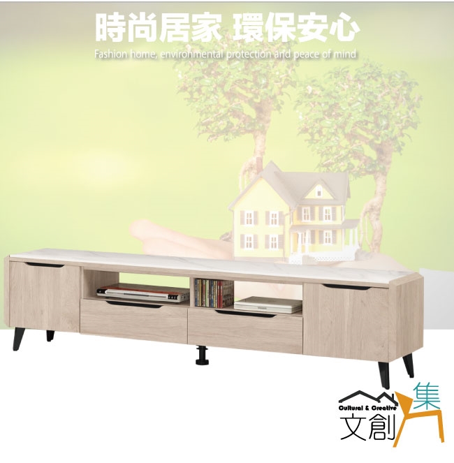 【文創集】麥格妮岩板6.7尺二門二抽電視櫃/視聽櫃 淺橡木紋色系+現代簡約風格+安心材質製造,使用放心+搭配居家更便利,整體採用防蛀木心板+防鏽黑漆五金腳座+五金滑軌結構+12mm高硬度岩板桌面板等材質搭配外層採用優莉坦耐磨全包式噴漆處理 ,採用開門櫃+二抽屜+開放式收納等收納空間設計,全由專人配送到家,專業安心服務,替你省下更多時間!