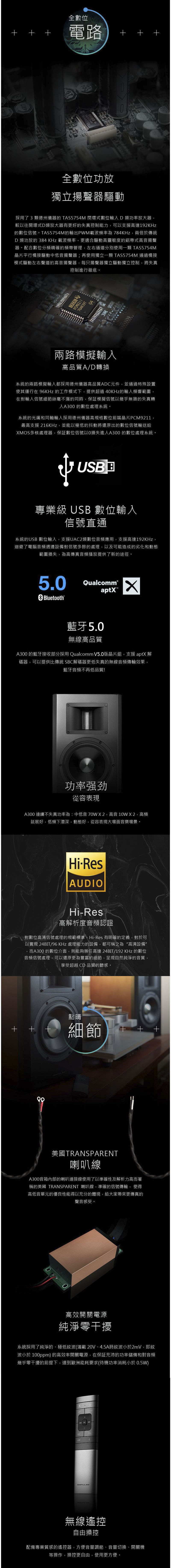 高音質的數位音效輸入|USB數位輸入-UAC2類數位音頻,支援192KHz數位訊號;藍牙aptx高音質解碼,藍牙音質不再低品質