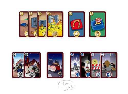 52張遊戲卡(26張贓物卡、10張警車卡、8張逃離卡、8張行動卡)