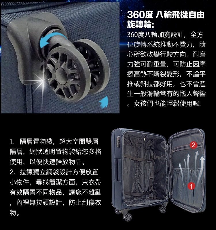 ※ 建議八輪一同平推旋轉受力,可延長輪子壽命,也較省力。(避免斜拉)
