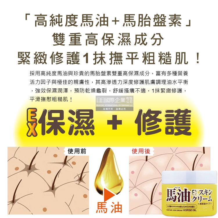 ●品名:高純度馬油EX加強版馬跆盤素緊緻修護全身保養高保濕乳霜