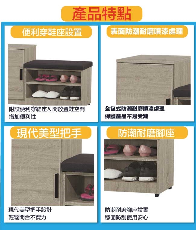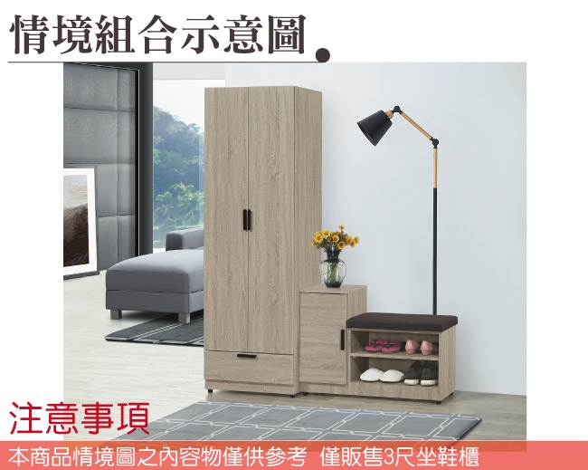 【文創集】泰雷3尺單門半開放玄關座鞋櫃 橡木紋色系+現代簡約風格+安心材質製造,使用放心+搭配居家更便利,整體採用防蛀木心板+防潮耐磨腳座+防夾手緩衝門片五金+五金滑軌結構等材質搭配外層採用優莉坦耐磨全包式噴漆處理 ,採用開門櫃+內&外開放層格+穿鞋椅凳設置等收納空間設計,全由專人配送到家,專業安心服務,替你省下更多時間!