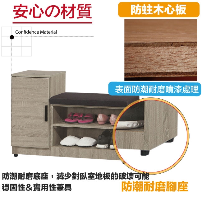 防蛀木心板+防潮耐磨腳座+防夾手緩衝門片五金+五金滑軌結構等材質