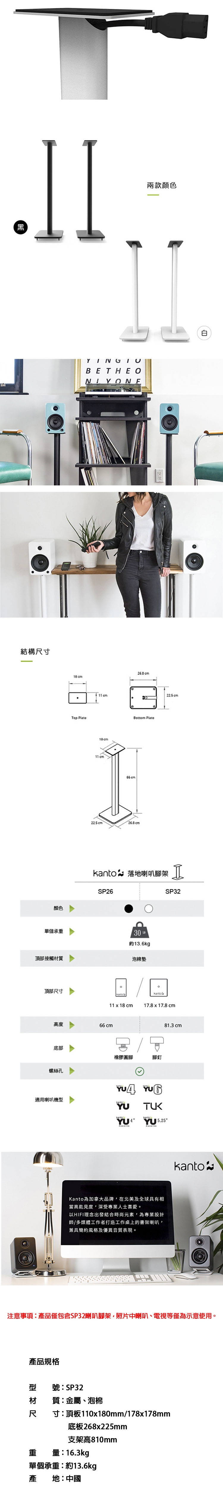 Kanto 加拿大品牌 SP32 喇叭通用落地腳架 公司貨