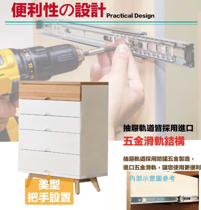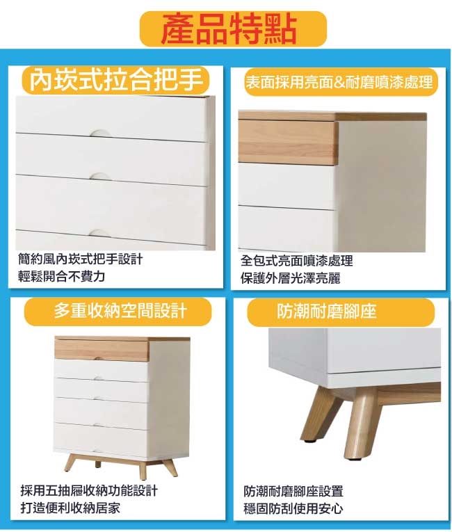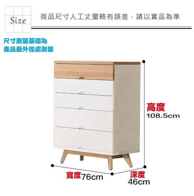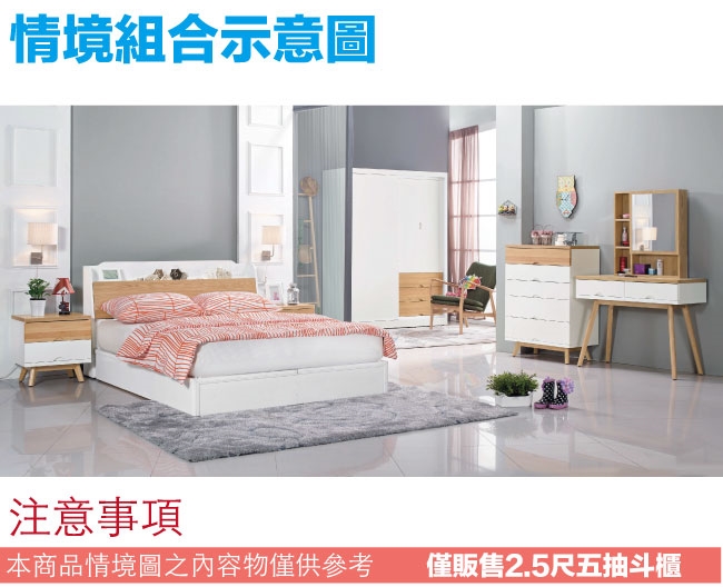 【文創集】路亞雙色2.5尺五抽斗櫃 木紋雙色系+現代簡約風格+安心材質製造,使用放心+搭配居家更便利,整體採用防蛀木心板+防潮MDF板材+防潮耐磨腳座+五金滑軌結構等材質搭配外層採用優莉坦耐磨&亮面全包式噴漆處理 ,採用五抽屜+開放式收納等收納空間設計,全由專人配送到家,專業安心服務,替你省下更多時間!