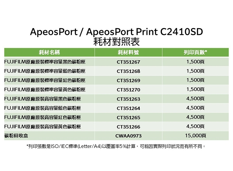 各容量碳粉有不同門檻,門檻不得低於官網公告。
