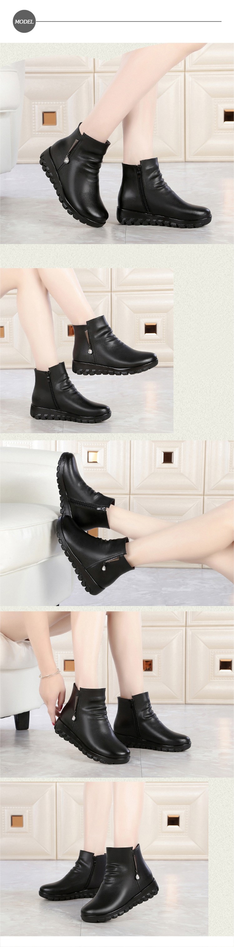【MOM】短靴 厚底短靴/真皮保暖機能時尚金屬寶石釦飾厚底短靴 黑