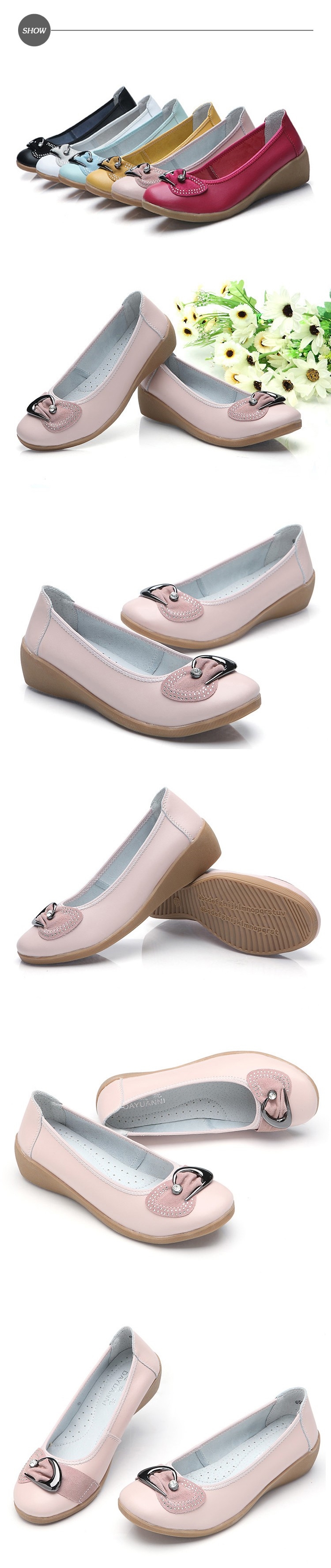 【MOM】跟鞋 坡跟鞋/真皮燙鑽時尚月牙釦造型坡跟鞋 粉