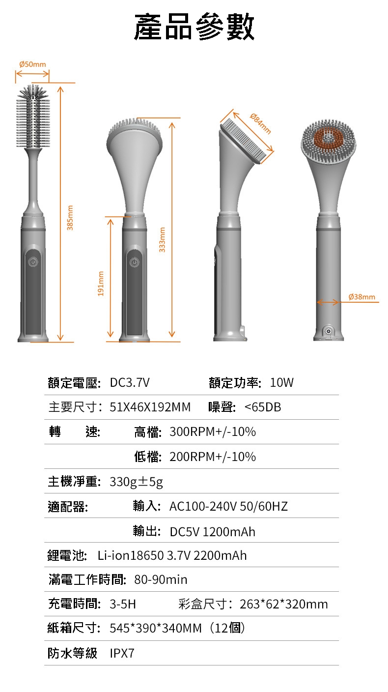 轉速:高档: 300RPM+/-10% 低档: 200RPM+/- 10%