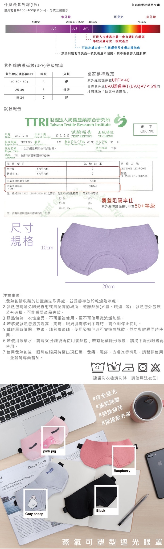 ◆ 戴眼罩時請閉上雙眼,請勿壓眼睛,使用發熱包時可會造成脫妝,並勿與眼膜同時使用。