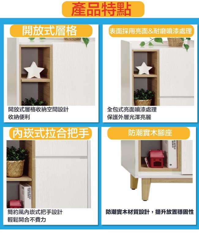 【文創集】奈吉亞雙色2尺二門半開放展示櫃/收納櫃 木紋雙色系+現代簡約風格+安心材質製造,使用放心+搭配居家更便利,整體採用防蛀木心板+防夾手緩衝門片五金+防潮耐磨腳座等材質搭配外層採用優莉坦耐磨&亮面全包式噴漆處理 ,採用開門櫃+內&外開放層格等收納空間設計,全由專人配送到家,專業安心服務,替你省下更多時間!