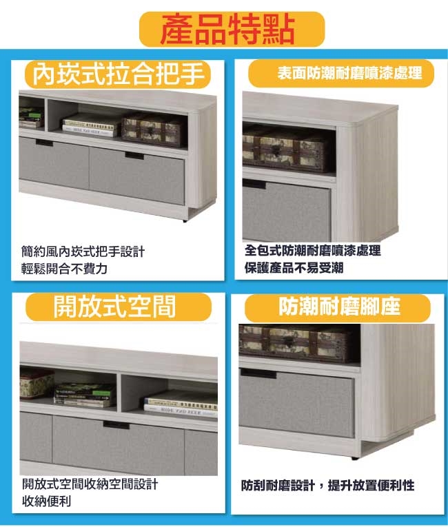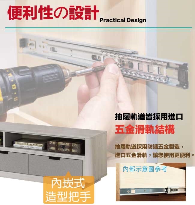 採用三抽屜+開放層格收納空間設計