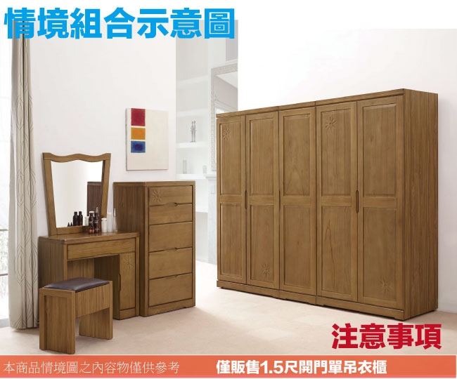 【文創集】桑瑪實木1.5尺單門高衣櫃 柚木紋色系+現代簡約風格+安心材質製造,整體採用松木實木+防蛀木心板+防潮耐磨腳座等安心材質製造,產品外層採用防潮耐磨噴漆處理搭配採用開門櫃+吊衣桿+內開放層格等收納空間設計,全由專人配送到家,專業安心服務,替你省下更多時間!