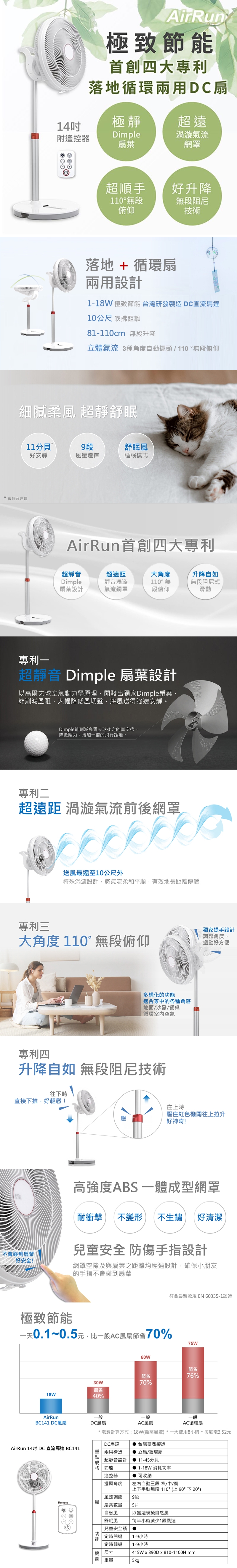 AirRun 14吋DC直流馬達3D循環節能電扇 BC141