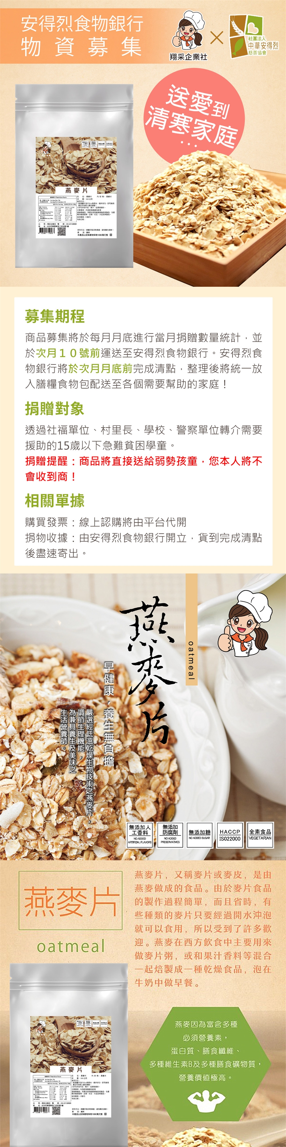 品名:《安得烈x翔采》物資募集-養生燕麥片(350g/袋,共2袋)