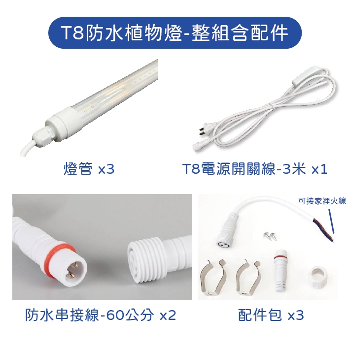 內容物 : 3尺 T8防水植物燈-全光譜*3支